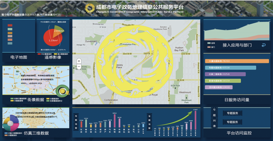 管理數(shù)據(jù)包括成都市二維、三維、2.5維、衛(wèi)星影像、實(shí)景影像、標(biāo)準(zhǔn)地址、各委辦局專(zhuān)題數(shù)據(jù)200多萬(wàn)條,總量超過(guò)7.4T。